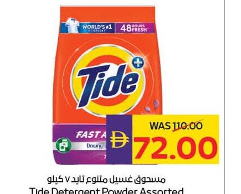 Tide detergent powder, assorted, 7kg pack for powerful cleaning.