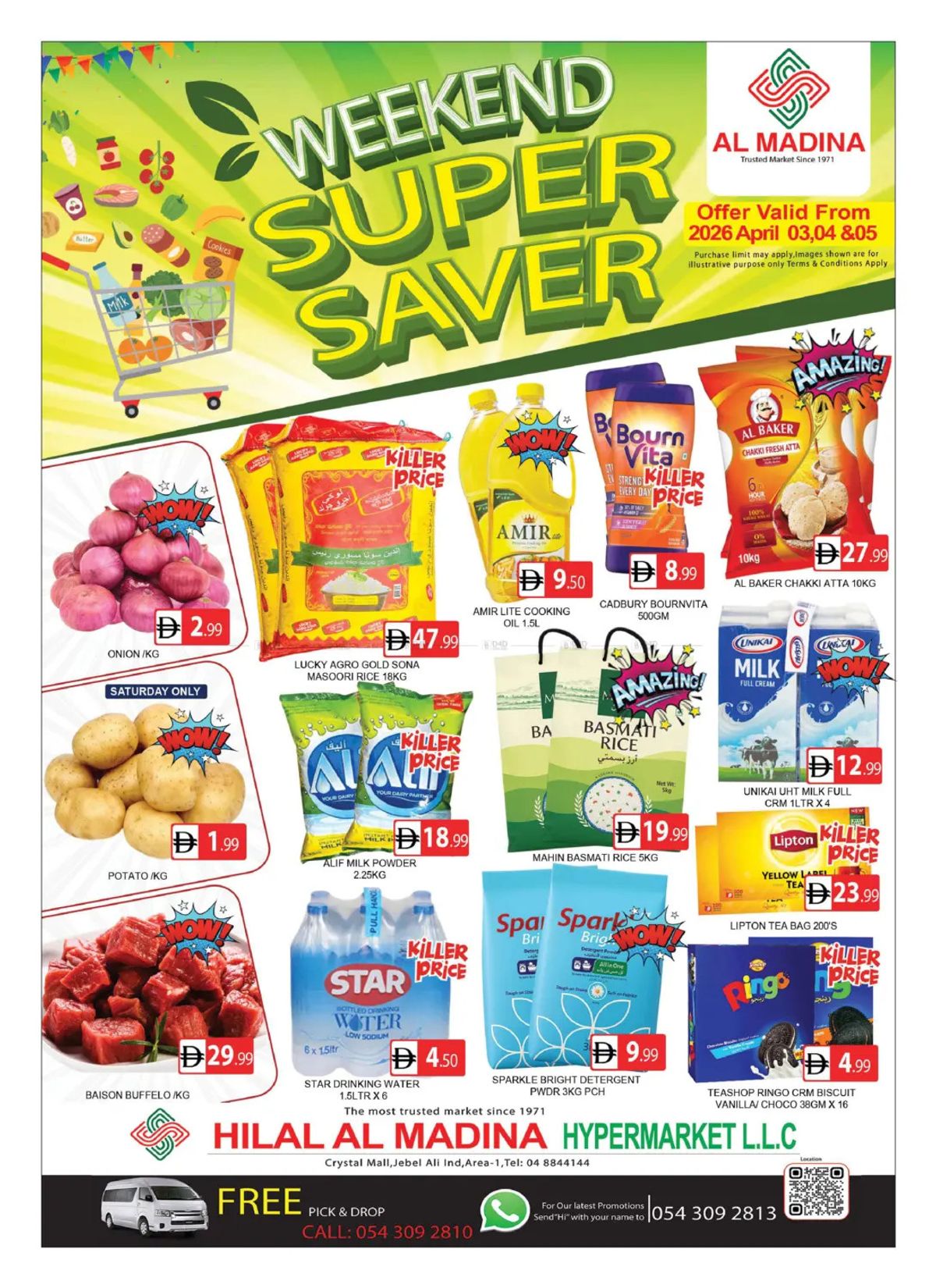 Al Madina Hypermarket has released Super Saver catalog in Dubai, UAE - Hilal Al Madina Hypermarket - Crystal Mall Jebel Ali from Apr 5, 2026 to Apr 5, 2026 in 1 branch(s).