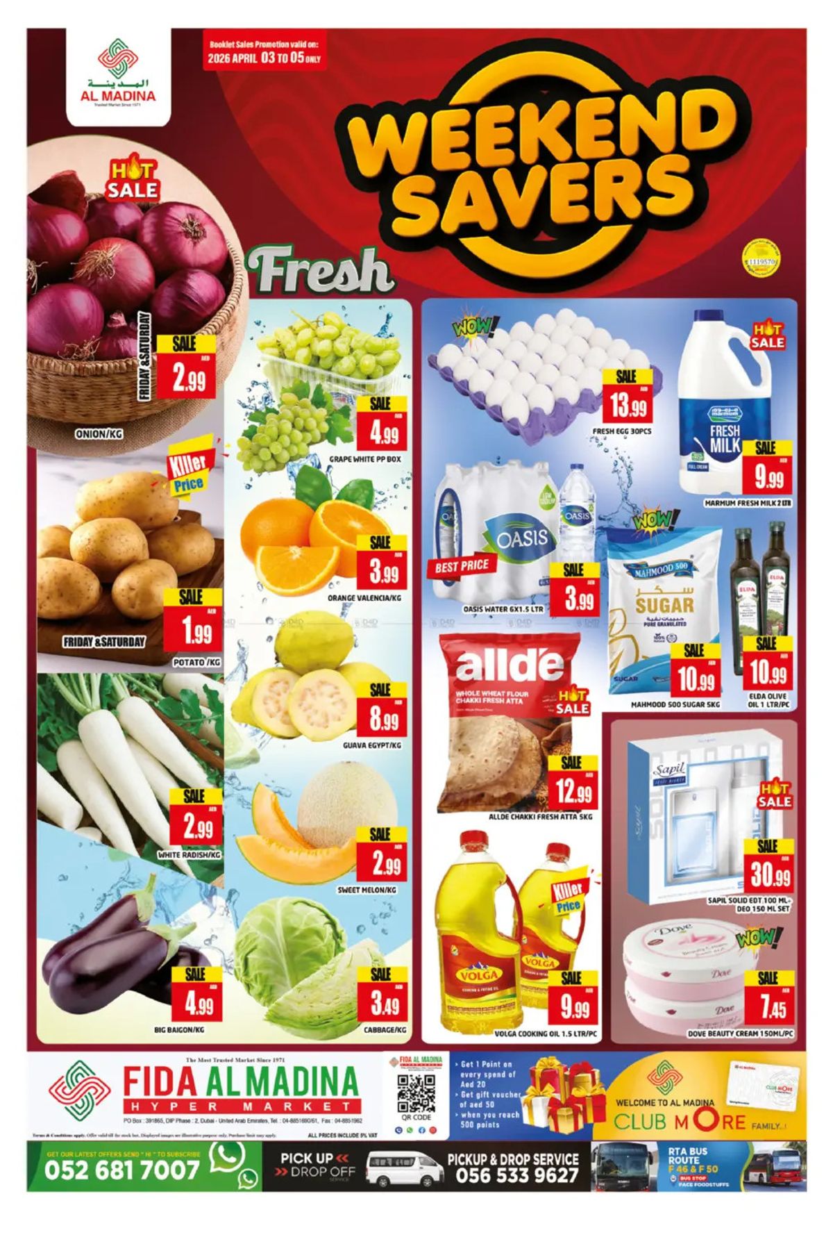 Al Madina Hypermarket has released Weekend Savers catalog in Dubai, UAE - Fida Al Madina Hypermarket from Apr 5, 2026 to Apr 5, 2026 in 1 branch(s).