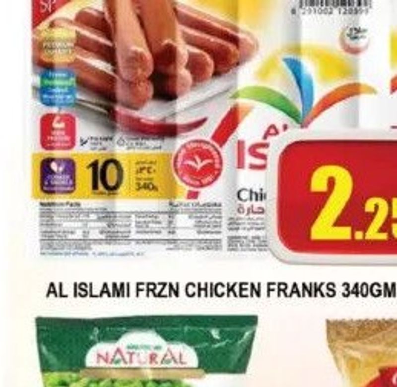 Al Islami frozen chicken franks, 340 grams.