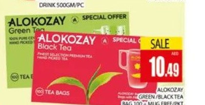 BeveragesAlokozayAlokozay Green/Black Tea Bag 100's Mug Free/PKT