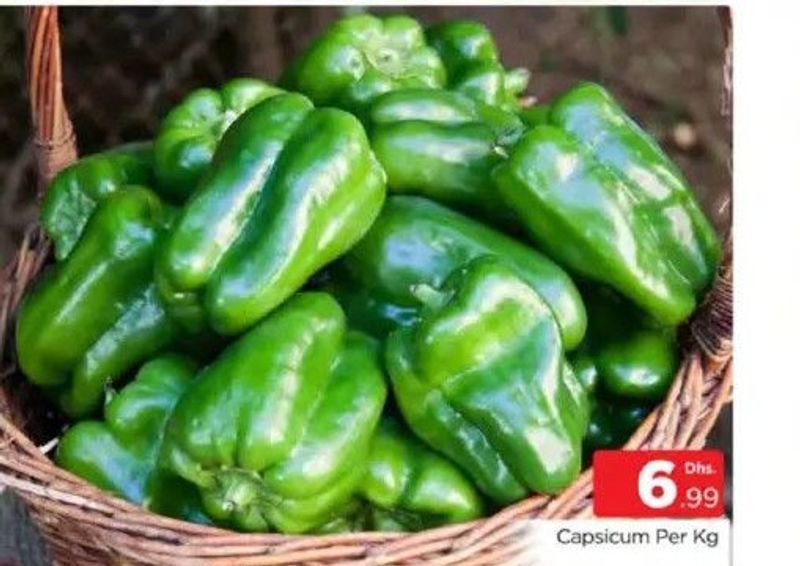 Vibrant green capsicum, perfect for salads, stir-fries, and cooking, sold per kilogram.