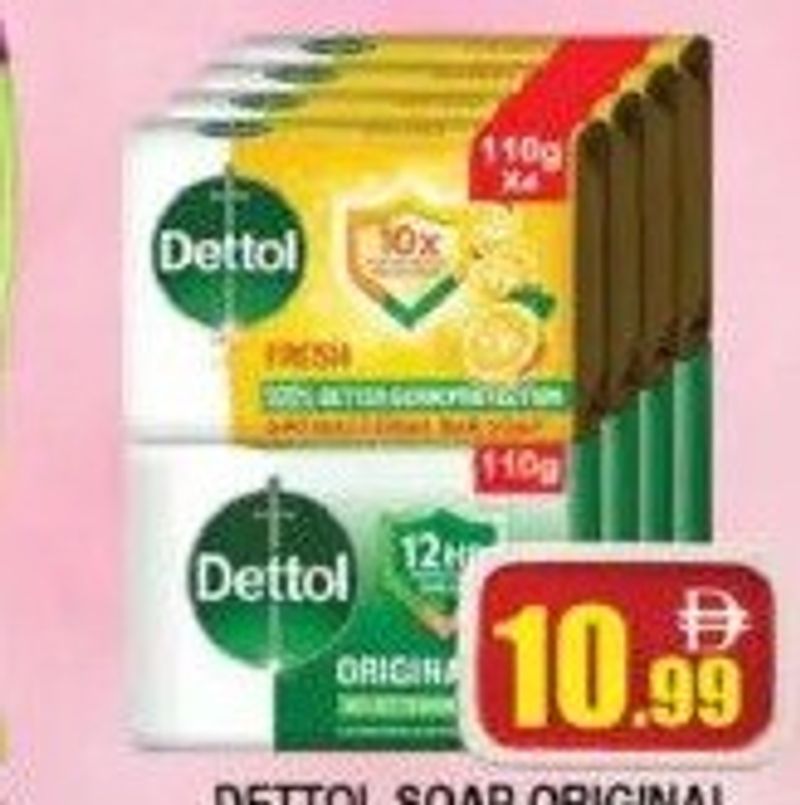 Dettol original soap, 110gm pack of 4.