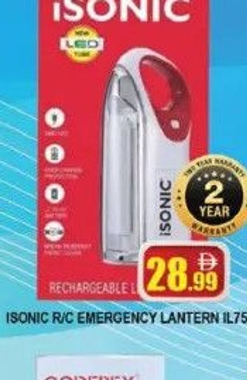 A rechargeable emergency lantern from iSONIC, providing reliable light during power outages.