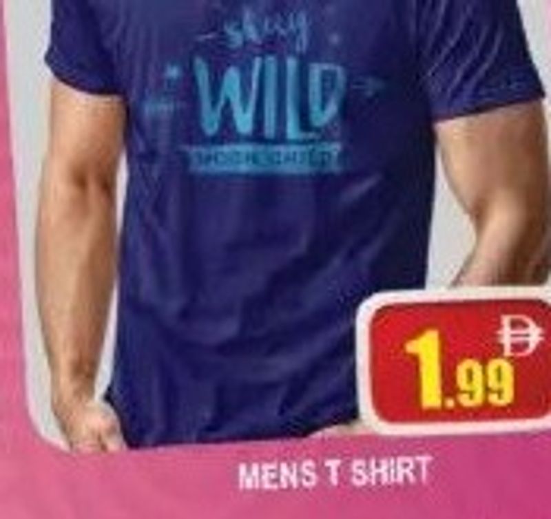 Blue men's short sleeve t-shirt with 'stay wild' print.