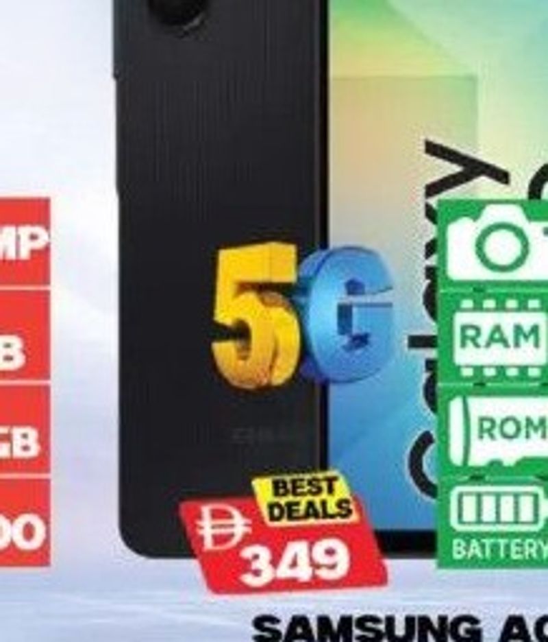 A Samsung A06 5G smartphone with 4GB RAM, 128GB ROM, and a 5000mAh battery.