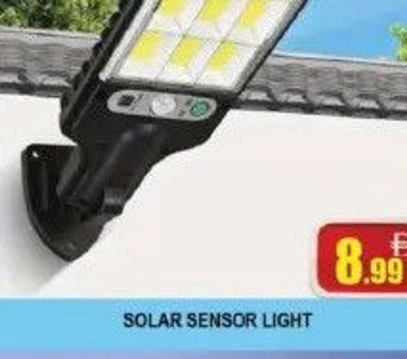 A solar-powered sensor light, ideal for outdoor security and illumination.