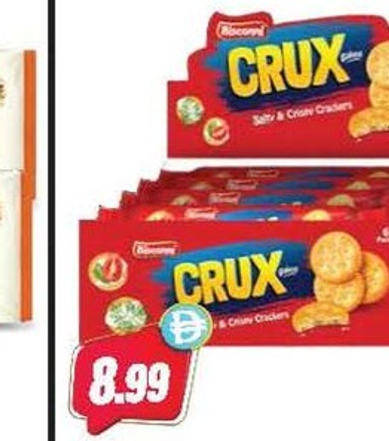A multipack of Bisconni Crux Crackers, offering a salty and crispy snack option.