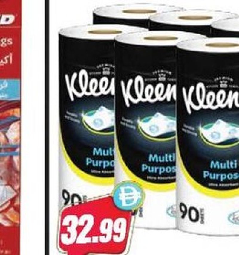 Kleenex multi-purpose kitchen towels, 6 rolls of 90 sheets each.