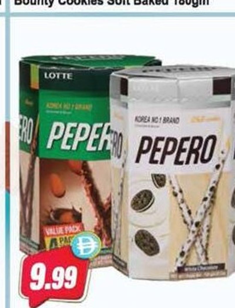 Assorted Lotte Pepero biscuit sticks, a popular Korean snack with various coatings.