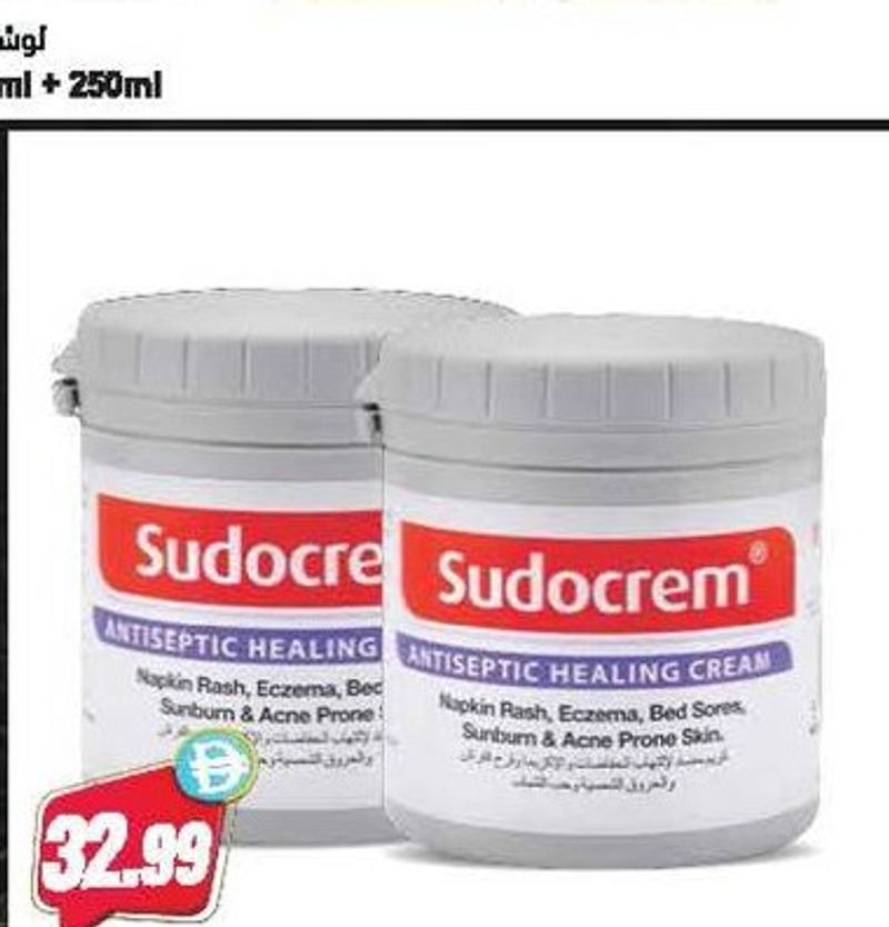Sudocrem antiseptic healing cream, 2 jars of 125g each.