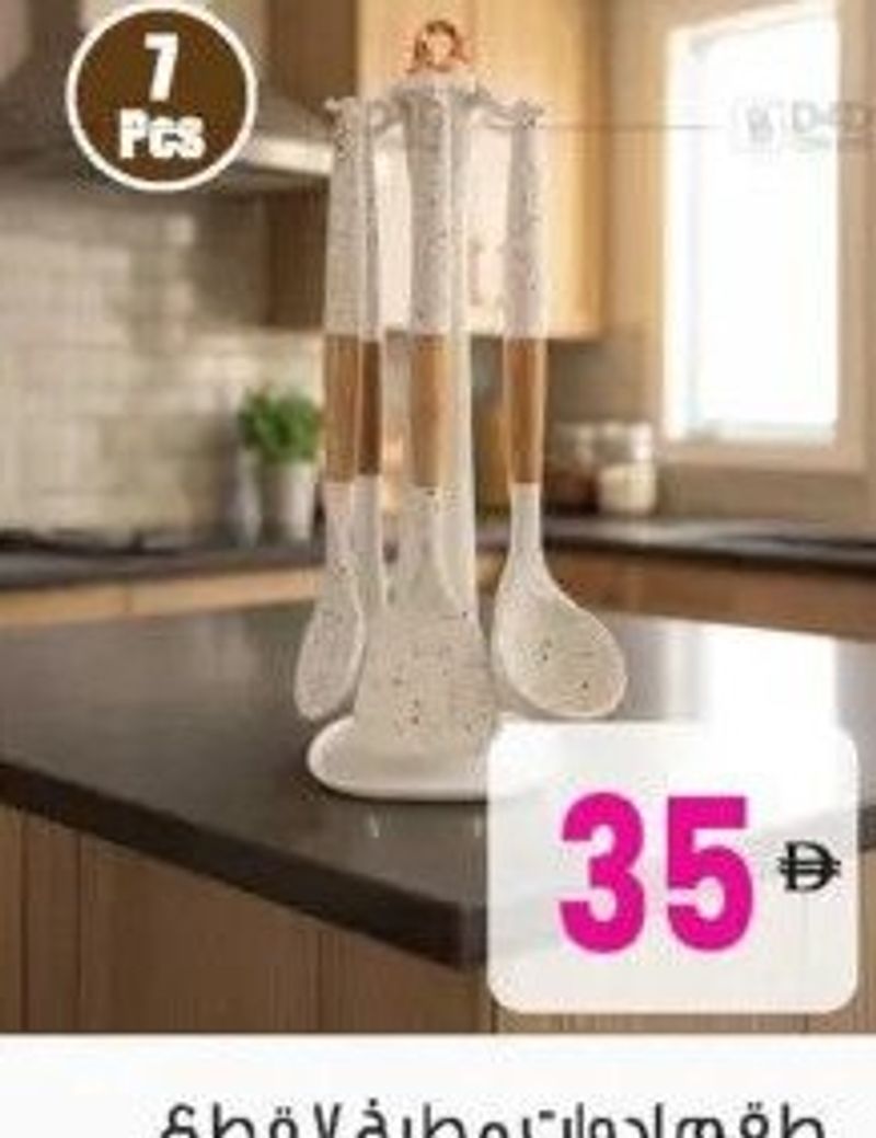 A 7-piece set of essential kitchen tools, available in assorted designs.