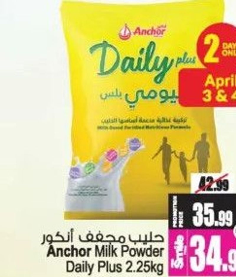 Anchor Daily Plus milk powder, 2.25kg pack.