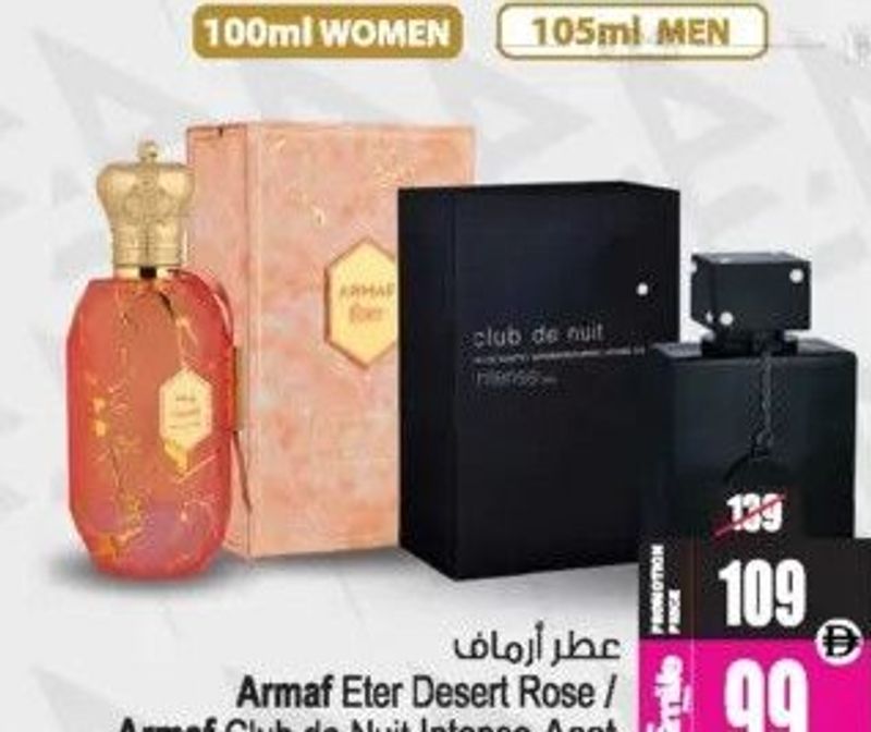 Assorted Armaf Etern Desert Rose (100ml women) and Club de Nuit Intense (105ml men) fragrances.