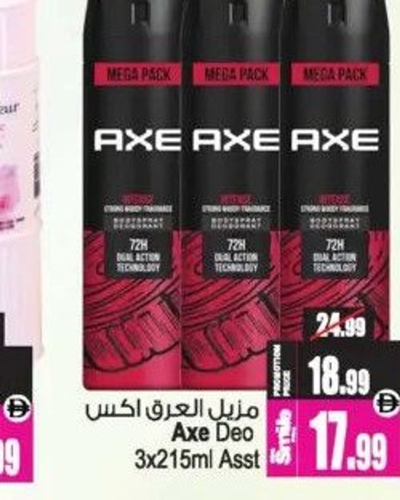 Axe Deodorant assorted, pack of 3, each 215ml.