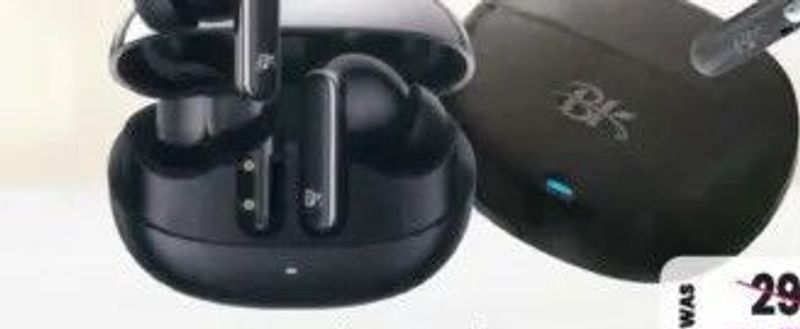 BK brand wireless ear buds, offering a convenient audio experience without cables.