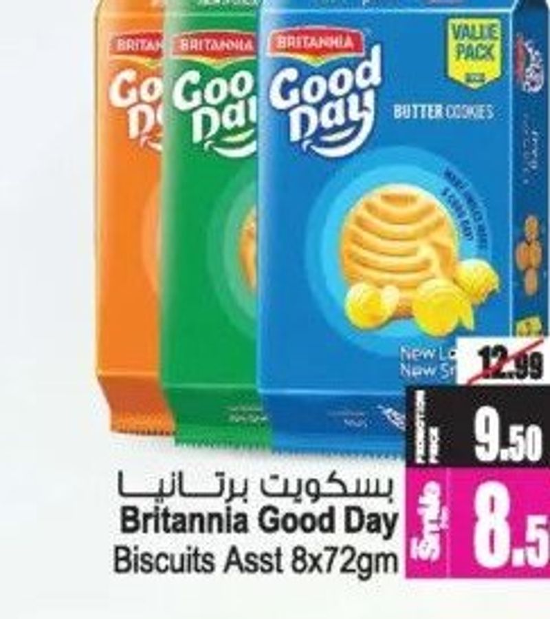 Assorted Britannia Good Day biscuits in an 8x72gm pack.
