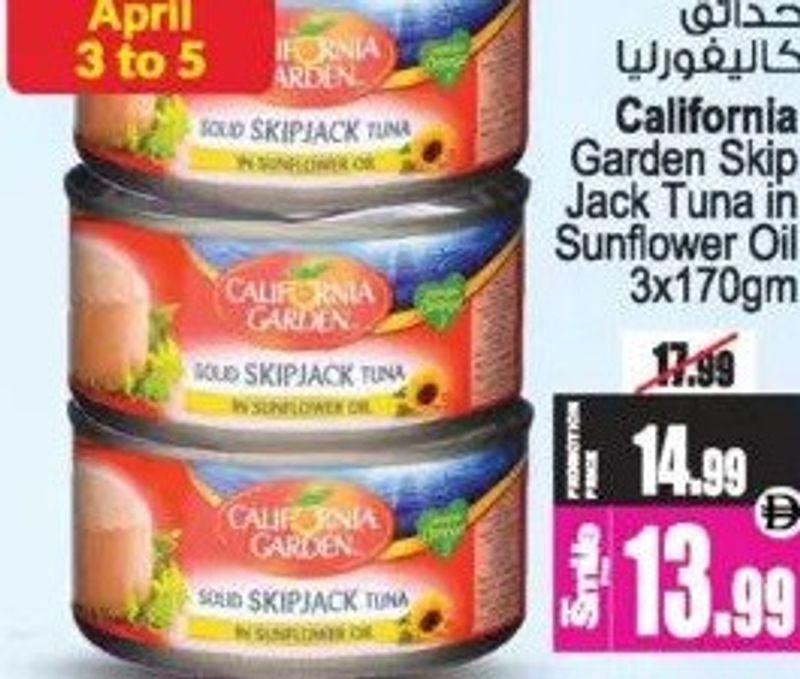 GroceryCalifornia GardenCalifornia Garden Skip Jack Tuna in Sunflower Oil 3x170gm