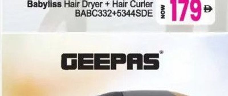 A Geepas combo set featuring a hair dryer and a hair straightener, model GHF86074, for complete hair styling.
