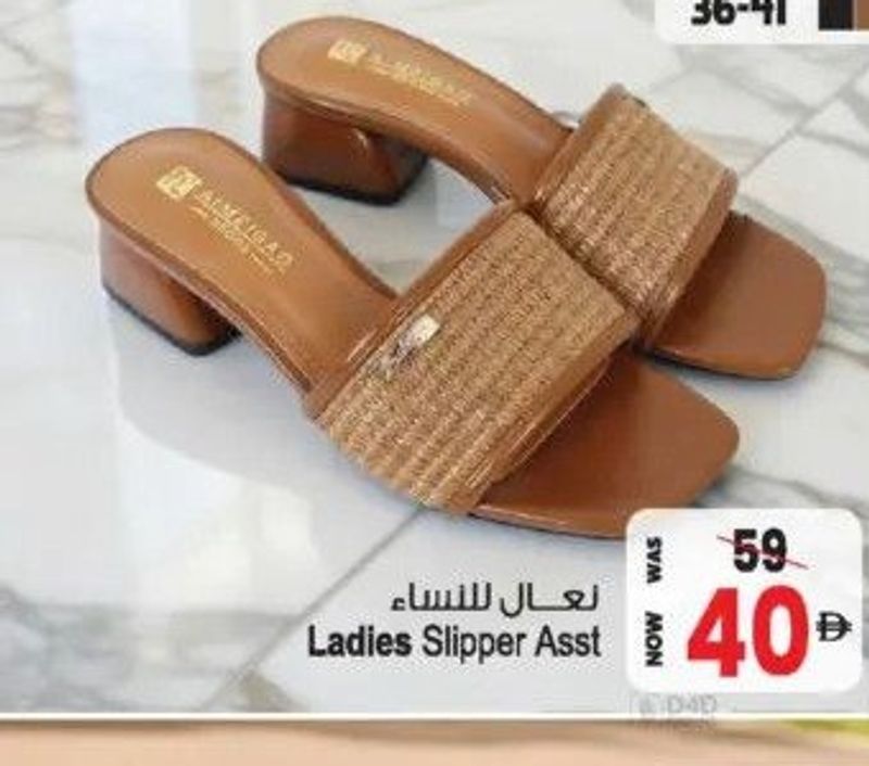 Assorted slippers for ladies, available in sizes 36-41.