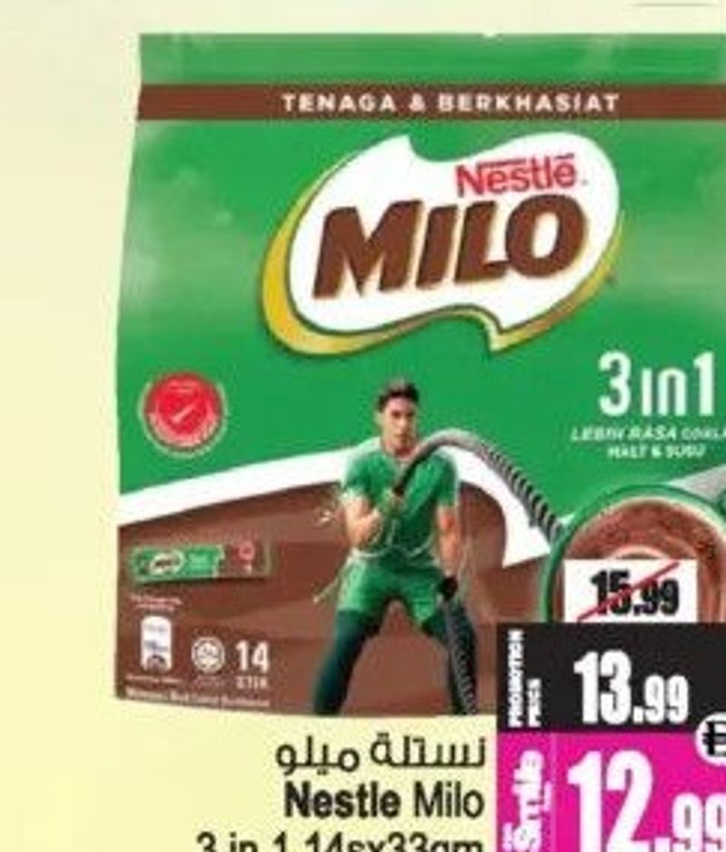 Nestle Milo 3 in 1 sachets, 14x33gm pack.