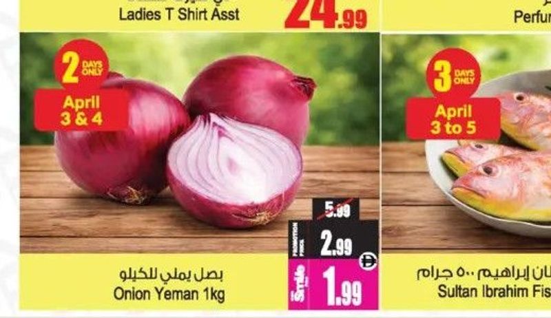 Fresh Yemen onions, 1kg pack, offered at a discounted price.
