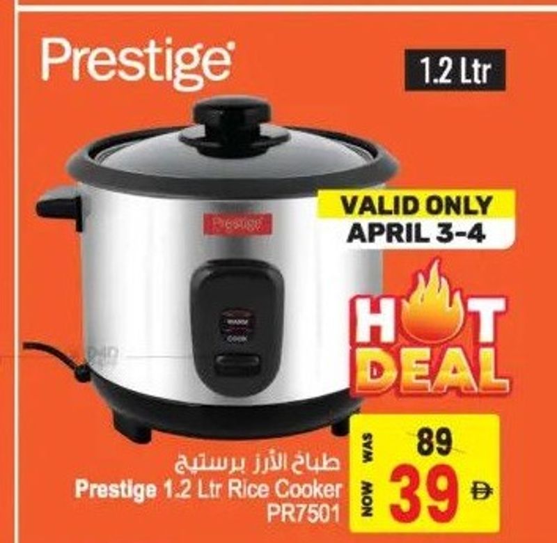 A Prestige 1.2 Ltr rice cooker, model PR7501, available as a hot deal valid only April 3-4.
