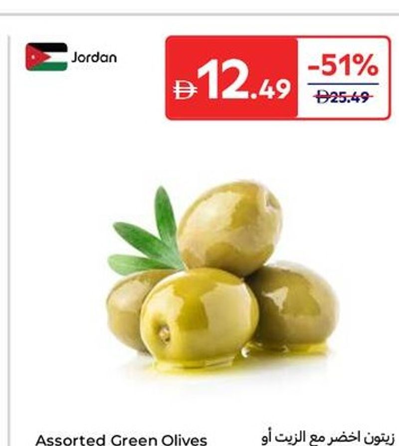Assorted green olives with oil or thyme, sold per kilogram, from Jordan.