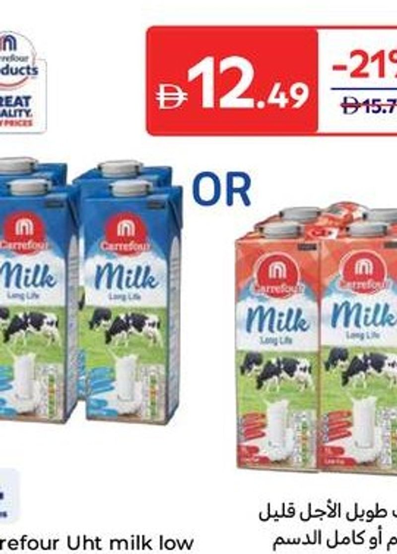 Carrefour Uht milk low fat or full fat 1L