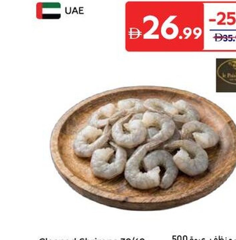 Cleaned shrimps, 30/40 count, 500g pack, sourced from UAE.