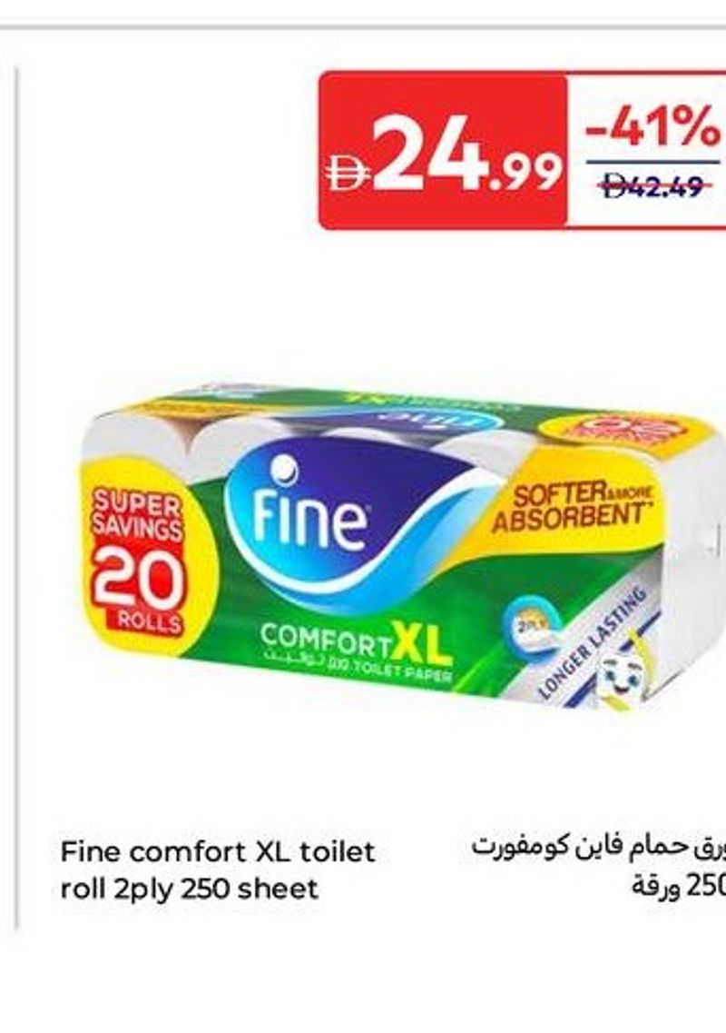 Fine comfort XL toilet roll, 2 ply, 250 sheets.