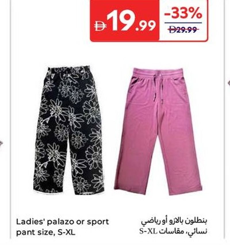 Ladies' palazo or sport pants, available in sizes S-XL.