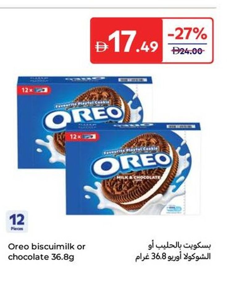 Oreo biscuits, available in milk or chocolate flavor, a classic cookie.