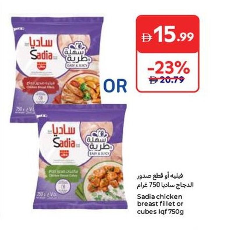 Sadia frozen chicken breast fillet or cubes, 750g.