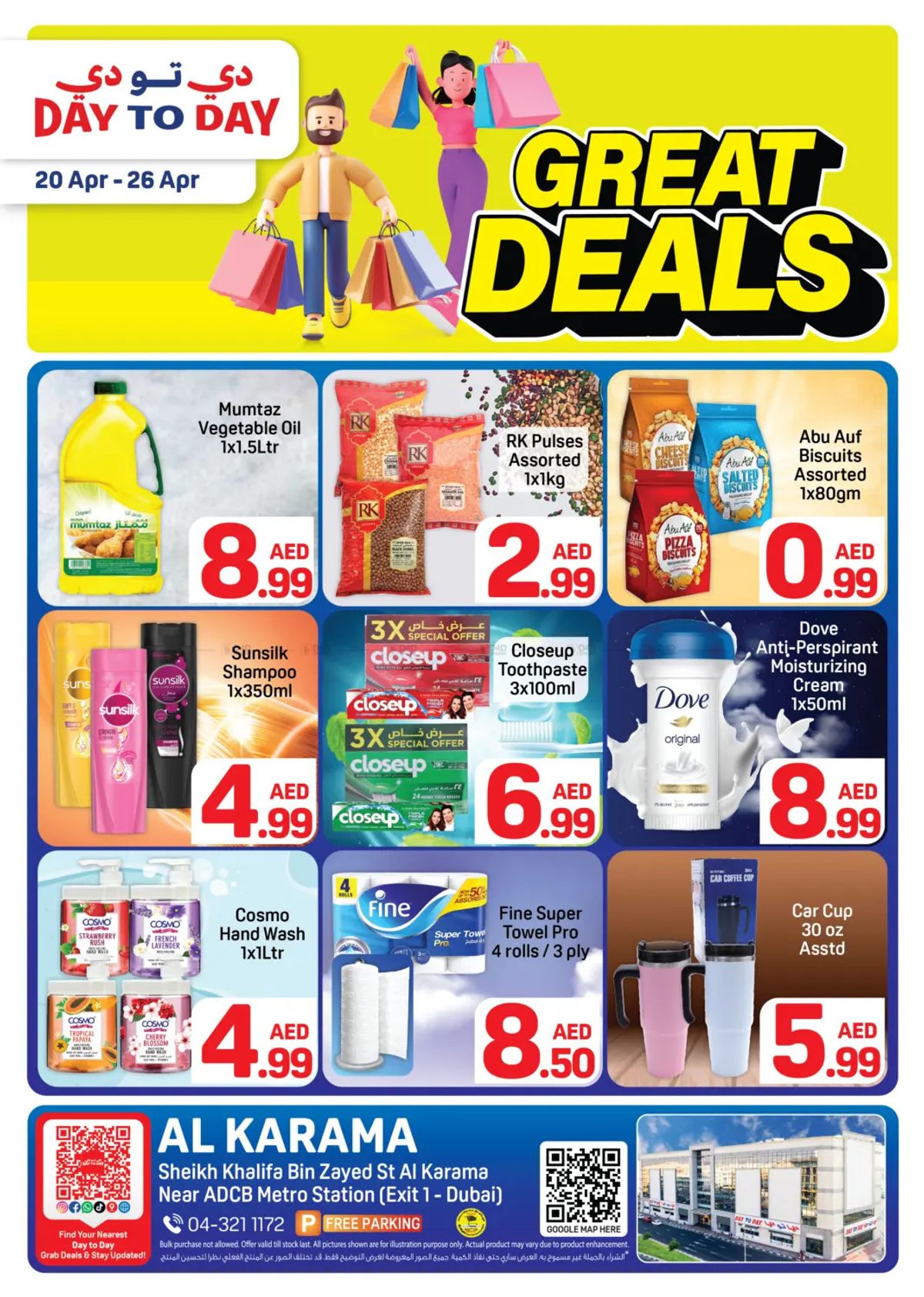 Day To Day has released Great Deals catalog in Dubai, UAE - Al Karama from Apr 20, 2026 to Apr 26, 2026 in 1 branch(s).