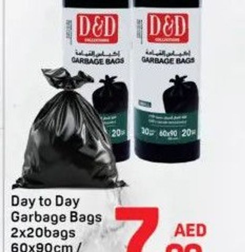 Day to Day Garbage Bags, 2 packs of 20 bags, 60x90cm, 30-gallon capacity.