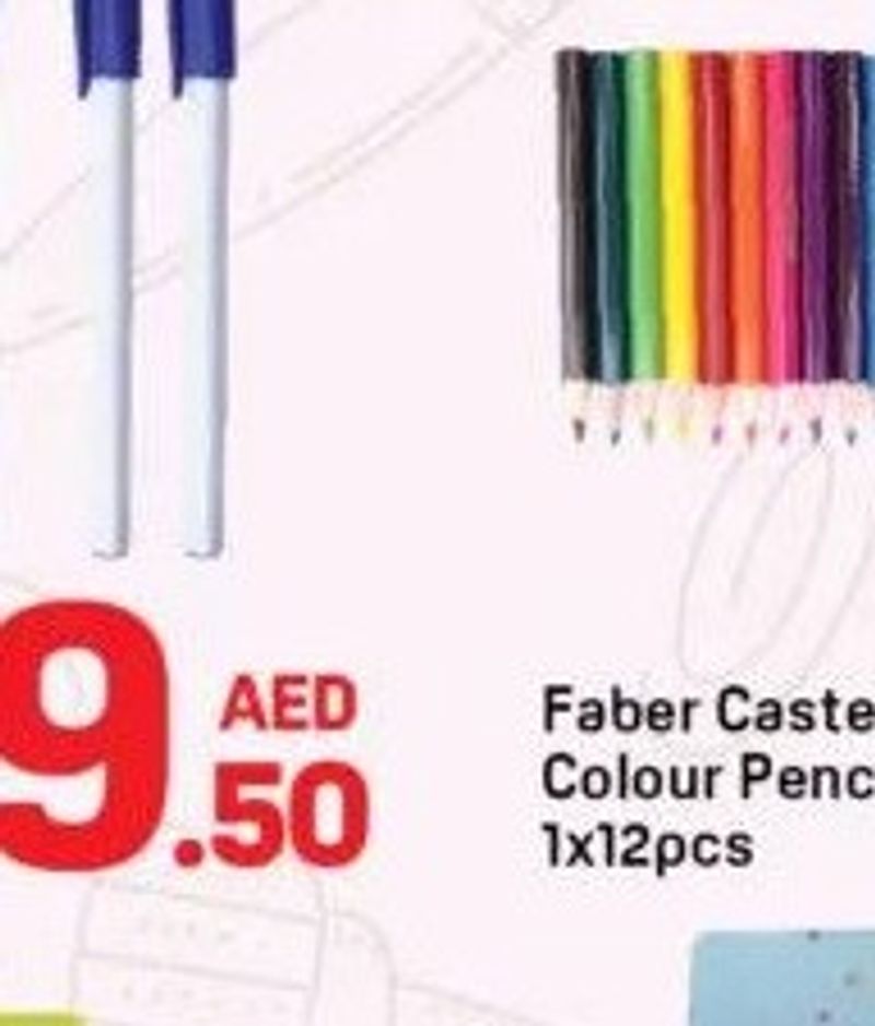 Faber Castell colour pencils, 12 pieces per pack.