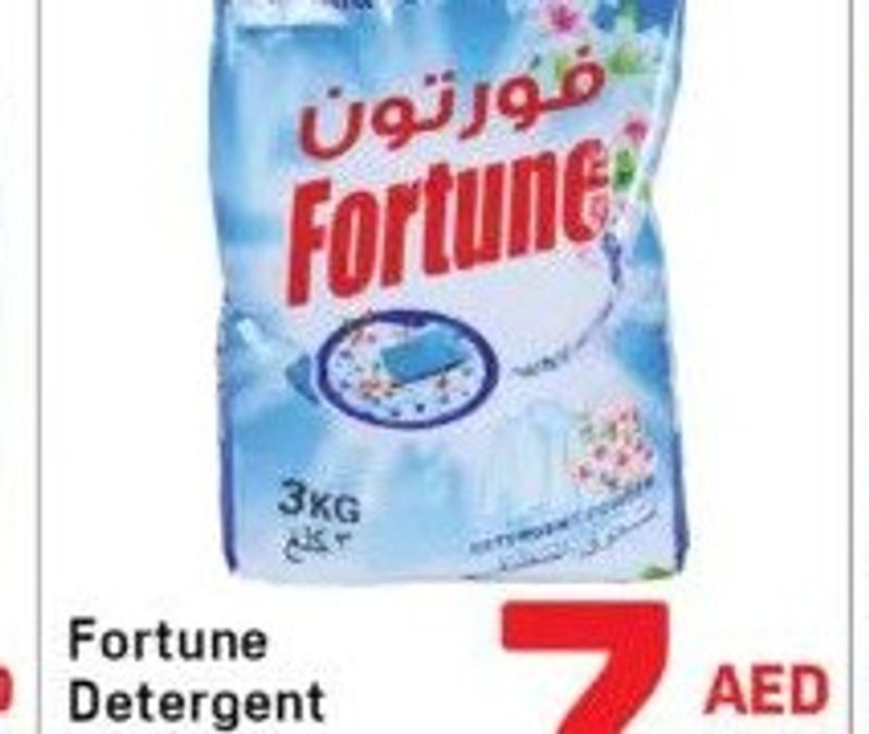 A 3kg pack of Fortune detergent powder, suitable for washing clothes.