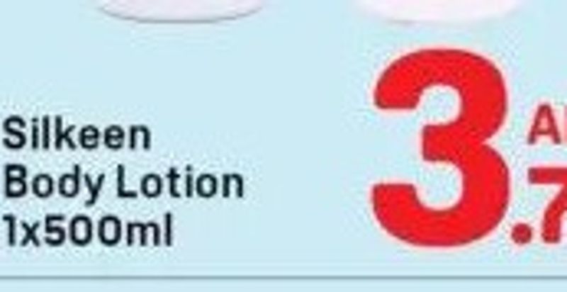 Silkeen body lotion in a 500ml bottle.