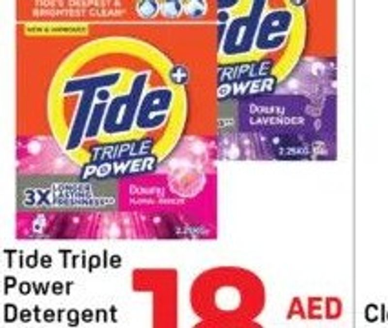 A 2.25kg pack of Tide Triple Power detergent powder, offering strong cleaning performance.