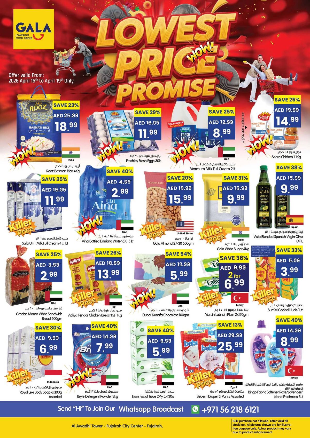 Gala Supermarket has released Lowest Price Promise catalog in Fujairah, UAE - Fujairah City Center from Apr 16, 2026 to Apr 19, 2026 in 1 branch(s).