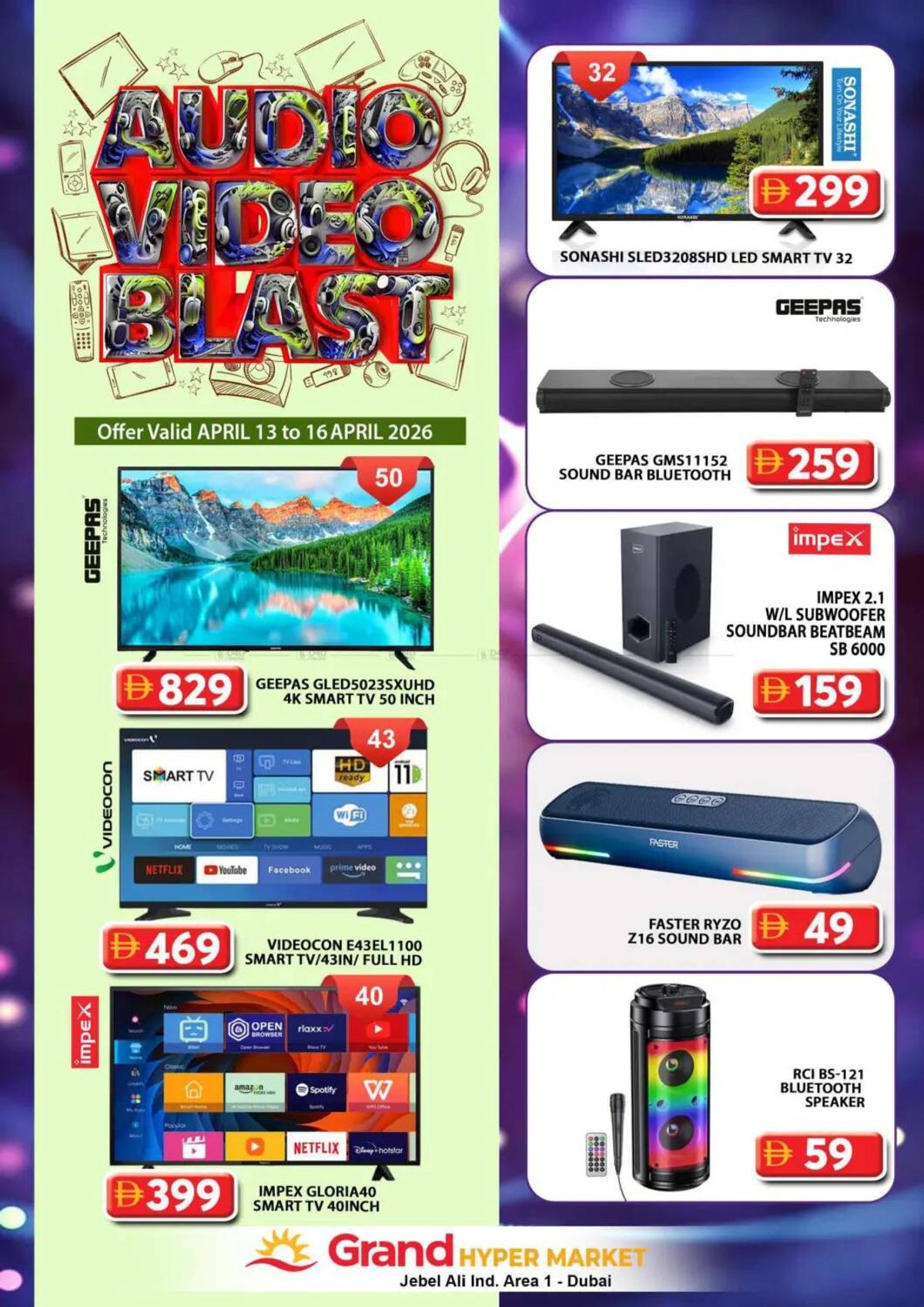 Grand Hypermarket has released Audio Video Blast catalog in Dubai, UAE - Grand Hypermarket Jebel Ali from Apr 13, 2026 to Apr 16, 2026 in 1 branch(s).