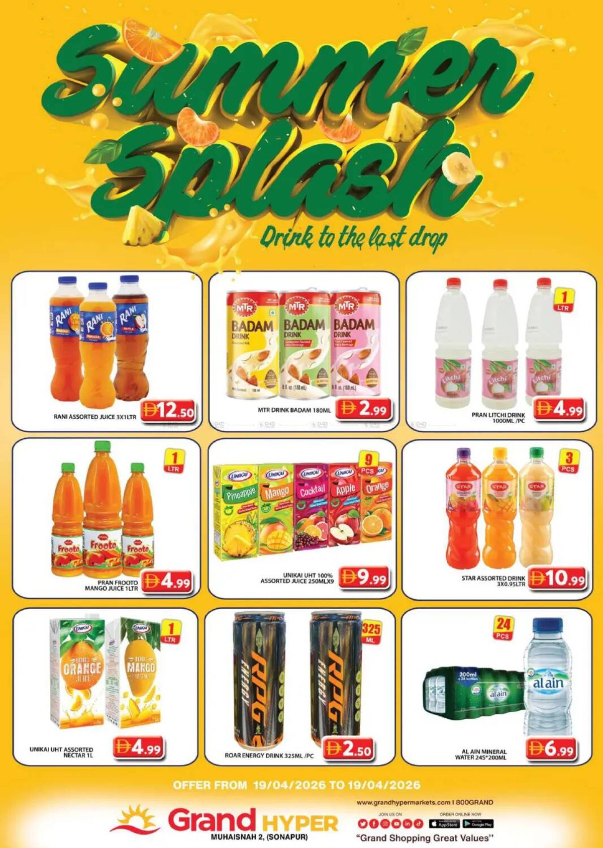 Grand Hypermarket has released Summer Splash catalog in Dubai, UAE - Grand Hyper Muhaisnah from Apr 17, 2026 to Apr 19, 2026 in 1 branch(s).