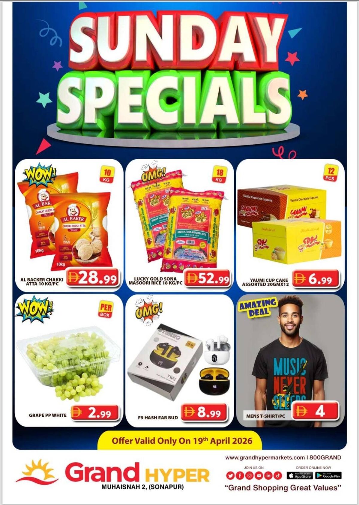 Grand Hypermarket has released Sunday Specials catalog in Dubai, UAE - Grand Hyper Muhaisnah from Apr 19, 2026 to Apr 19, 2026 in 1 branch(s).