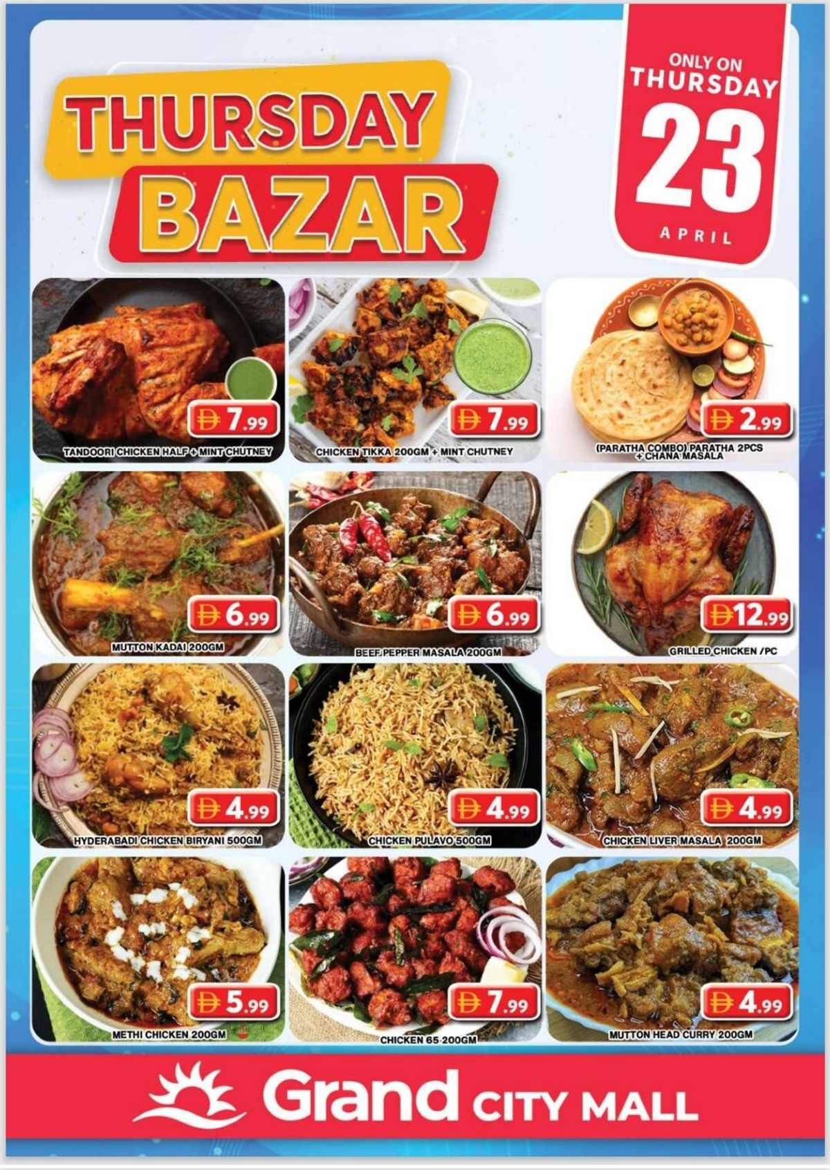 Grand Hypermarket has released Thursday Bazar catalog in Dubai, UAE - Grand City Mall from Apr 23, 2026 to Apr 23, 2026 in 1 branch(s).