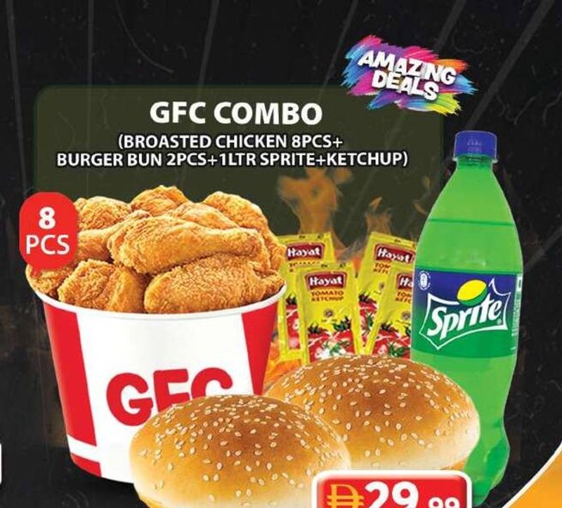 BakeryGFCGFC Combo (Broasted Chicken 8PCS + Burger Bun 2PCS + 1Ltr Sprite + Ketchup)