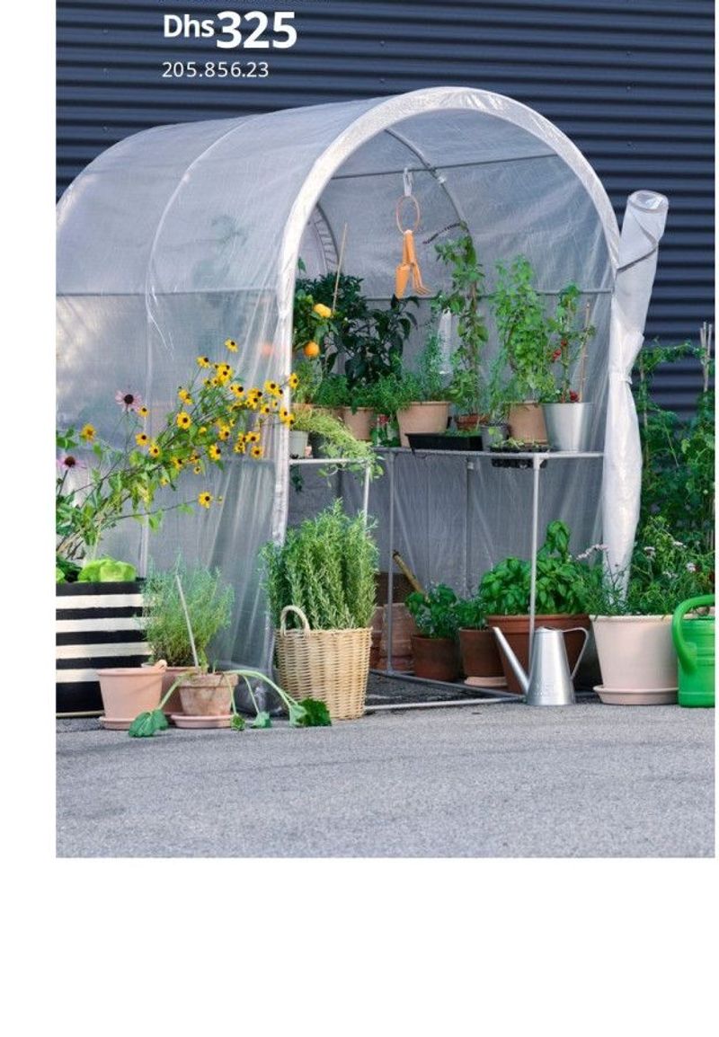 A transparent white greenhouse, measuring 123x190x190 cm.
