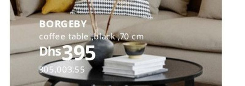 A black coffee table, 70 cm in diameter, part of the BORGEBY series.