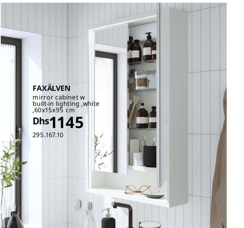 White mirror cabinet with integrated lighting, 60x15x95 cm, from the FAXÄLVEN series.