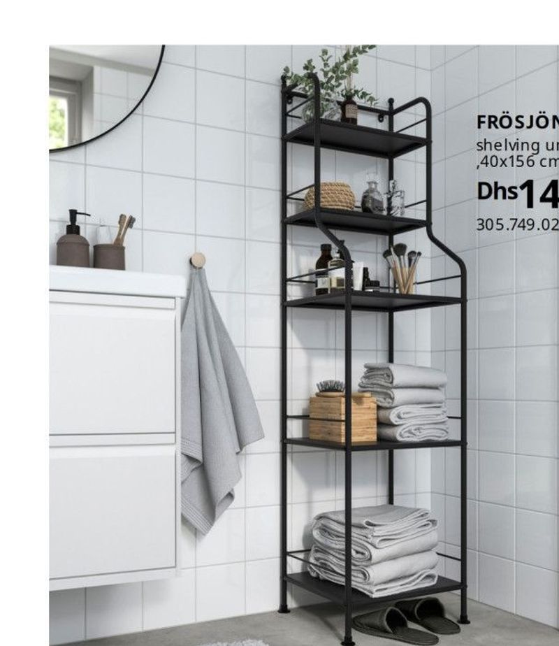 FRÖSJÖN shelving unit, black, 40x156 cm